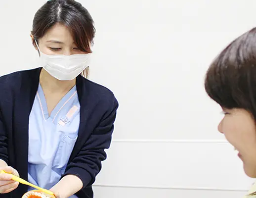 当院では、定期検診やブラッシング指導に力を入れて取り組み、長く健康な歯を維持するためのサポートをしています。 定期検診は3ヵ月に一度を目安にすることをおすすめしています。検診では、歯科衛生士が虫歯や歯周病にかかっていないか確認し、お口の中を隅々までお掃除します。また、歯周病予防として、患者さまのお口に合わせた歯磨きの仕方もご指導いたします。